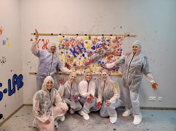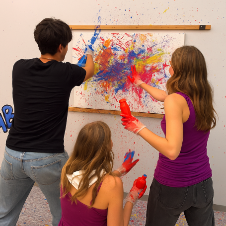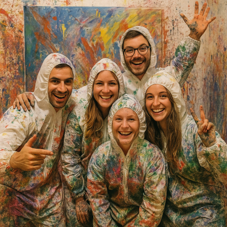 Ihr bekommt Farben, Leinwand, Utensilien, Schutzanzüge - und einen Raum ohne Regeln.