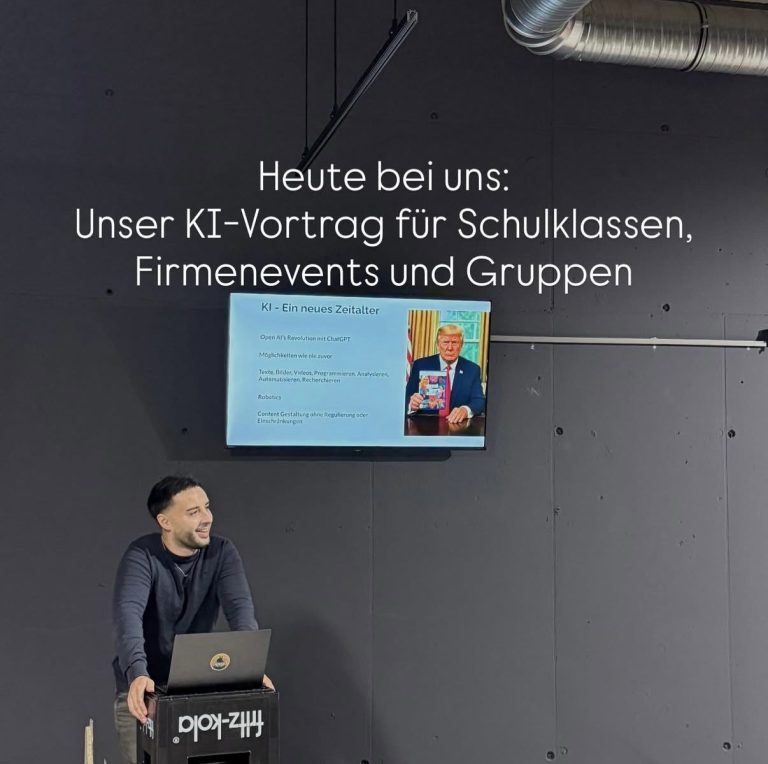 Gerne bieten wir dir im Rahmen unseres Angebots einen ca. 15-minütigen kostenlosen Vortrag zum Thema „Gefahren von KI-erzeugten Fake-Bildern“ an.